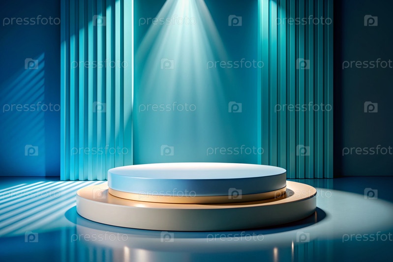 Минимальный фон для демонстрации продукта.Современная яркая трибуна с синей стеной.Креативный дизайн для презентации продукции