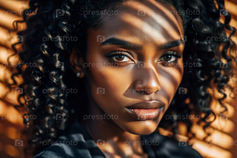 Красивый портрет афроамериканской модели на нейтральном оранжевом фоне с контрастным освещением и тенями
