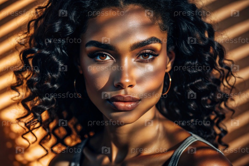 Красивый портрет афроамериканской модели на нейтральном оранжевом фоне с контрастным освещением и тенями