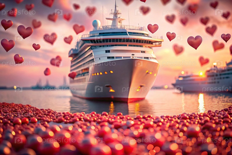 Любовный круиз. Ваше сердце и ваше сердце. Подарок для любимого человека в День святого Валентина - это как романтическое путешествие. Баннер с предложениями и акциями от туроператора