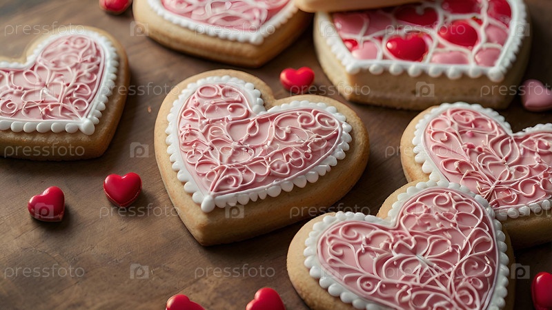 Домашние имбирные печенье в форме сердца с красным сахаром вкусное сердце бисквита из имбиря на сером бетонном фоне свежевыпеченный пряник для дня святого Валентина