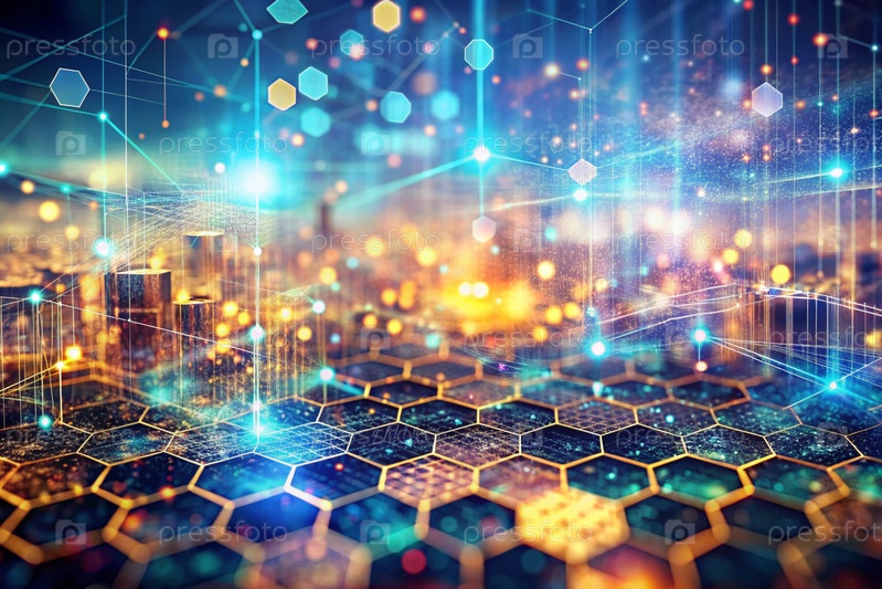 Высокотехнологичный материал. Близкий план клеточного рисунка с многоцветными огнями, создавая абстрактный и футуристический дизайн. Концепция развития и технологии будущего