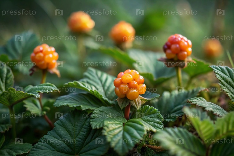 Cloudberry - вкусная северная ягода, которая растет в болоте, собирает спелые клубники из леса