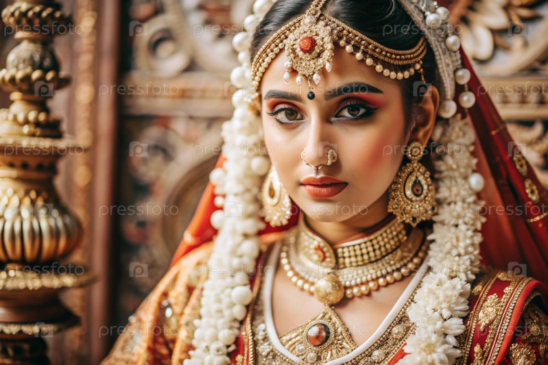 Красивая индийская девушка в традиционном национальном костюме, сари. со слонами. портрет символизирует традиции, культуру и красоту народа Индии