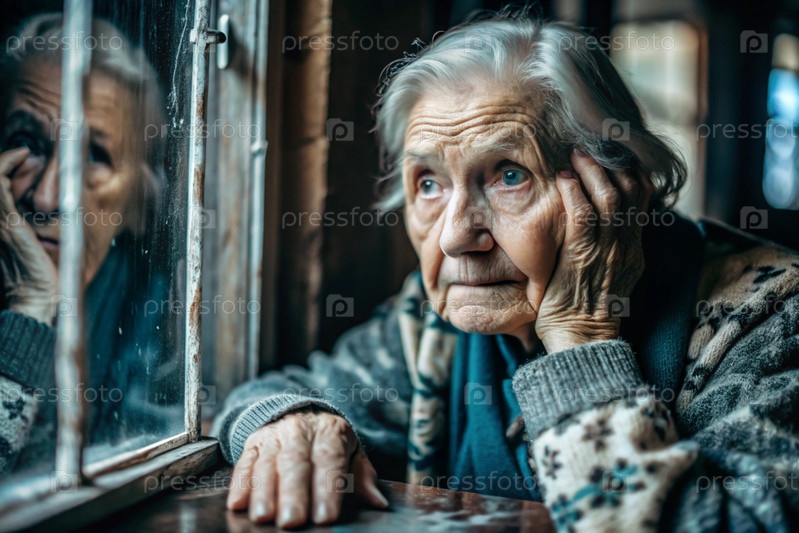 Минимализм.Портрет пожилой женщины, пенсионерки, концепция жизни пожилых людей, здоровье, одиночество и потеря памяти