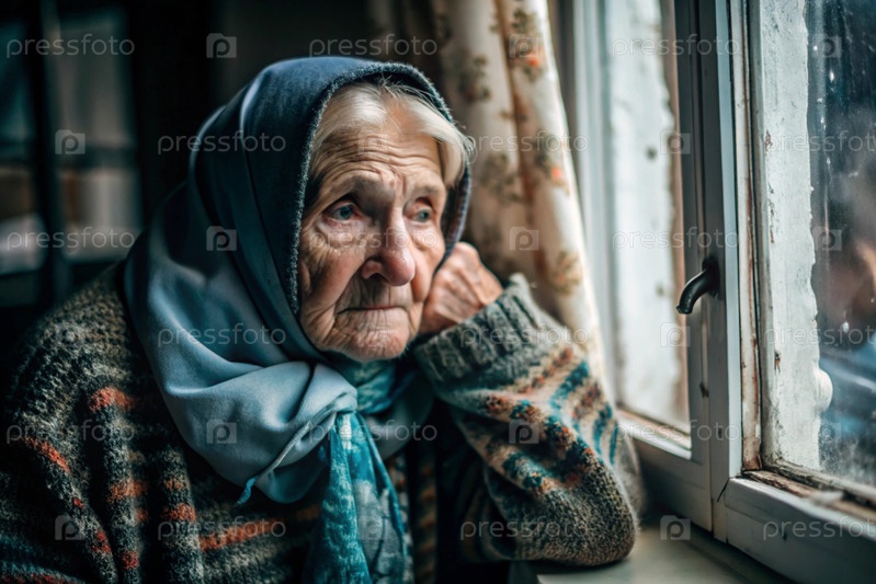 Минимализм.Портрет пожилой женщины, пенсионерки, концепция жизни пожилых людей, здоровье, одиночество и потеря памяти