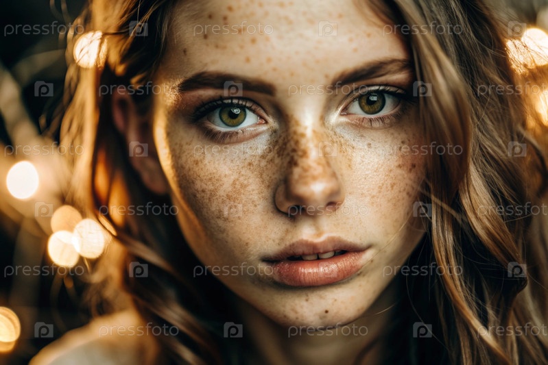 Глубокий эмоциональный портрет. Лицо молодой девушки без макияжа с выразительными глазами и кудрявыми коричневыми волосами. Естественная женская красота