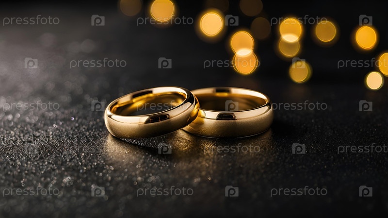 Золотые обручальные кольца на черном фоне с боковой стороной