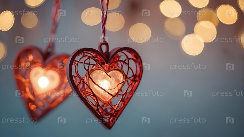 Концепция Дня святого Валентина, баннер с гирляндами в форме сердец и волшебными огнями для праздника, наполненного любовью