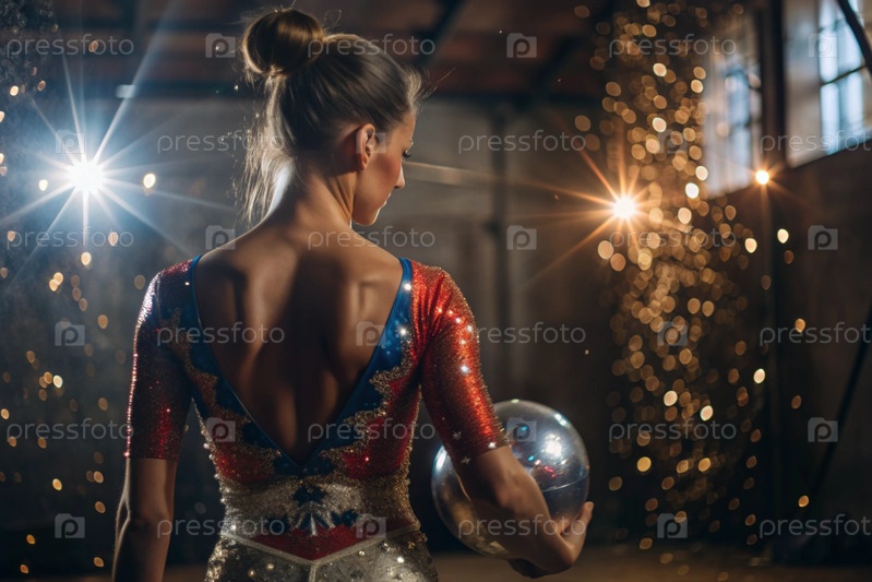 Ритмическая гимнастика крупный план красивая гимнастка с мячом в фокусе