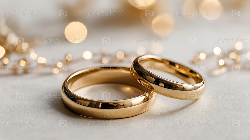 Золотые обручальные кольца на белом фоне со стороной