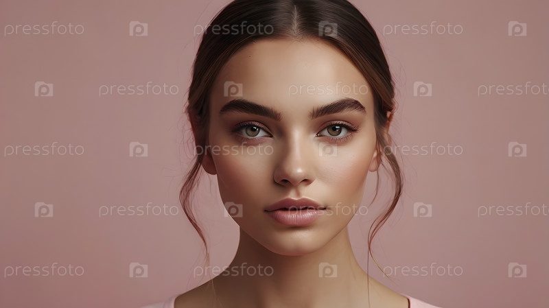 Красивый портрет натуральной девушки на нейтральном розовом фоне