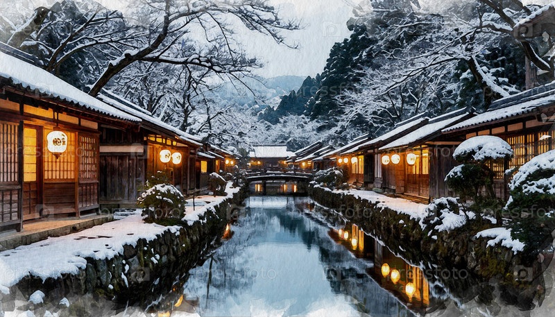 Вид на город Киото в Японии, акварельная иллюстрация, созданная AI
