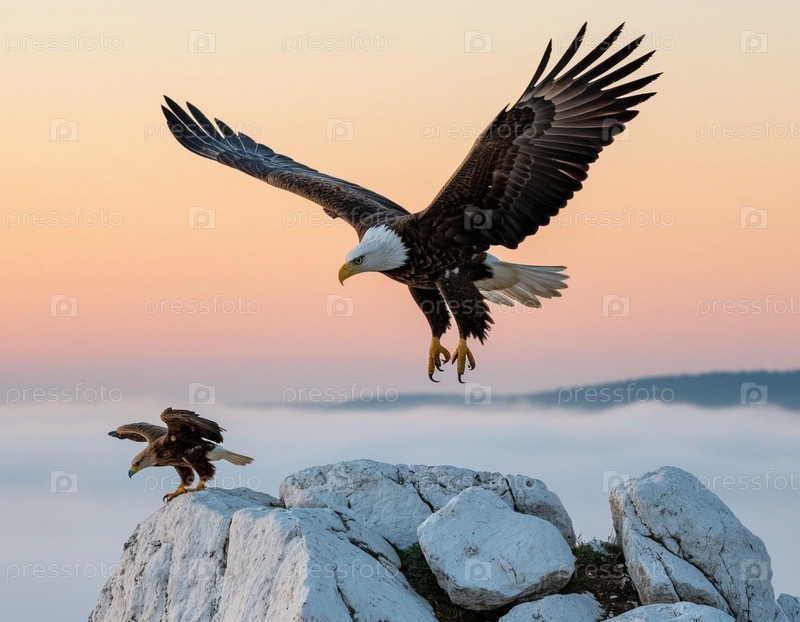 Орёл учит орла летать, белые скалы и нежная рассвета