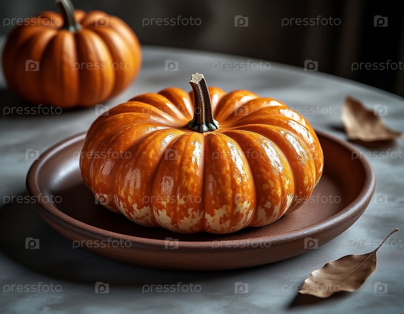Тыква на глиняной тарелке в День благодарения