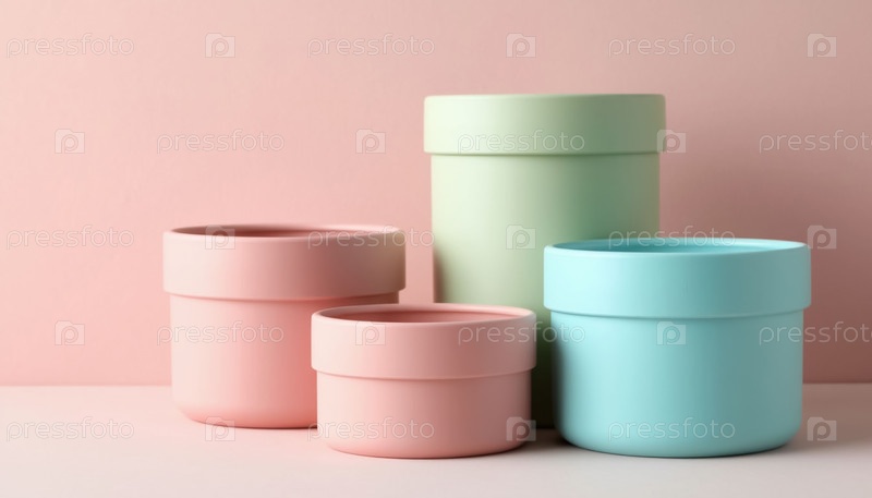 Пастельные декоративные или косметические контейнеры на столе