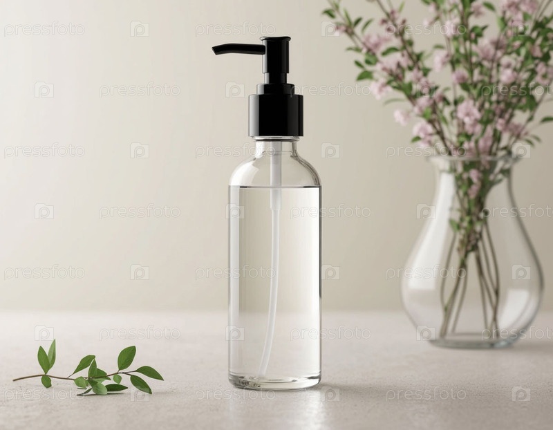 Бутылка с диспенсером для стирки на светлом фоне, компоновка