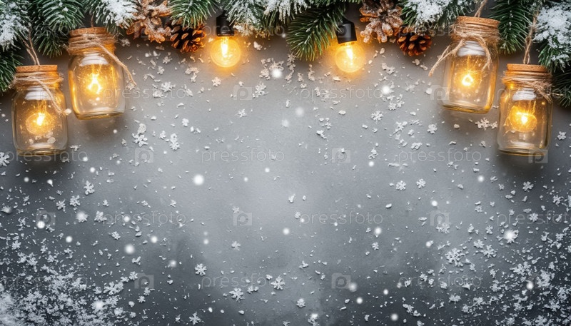 Рождественские фонари в каменных банках и фоне с копировальным пространством