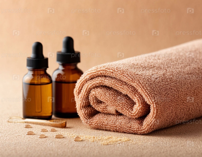 Массажные масла и спа-туалеты на бежевом фоне