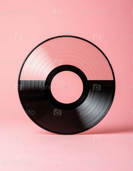 Абстрактный фон с виниловой пластиной на пастельно-розовом фоне