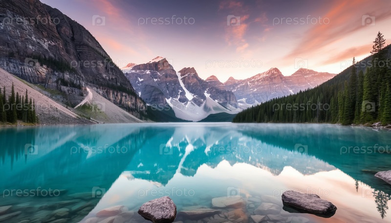Пастельный минималистский пейзаж лазурного соленого озера в горах