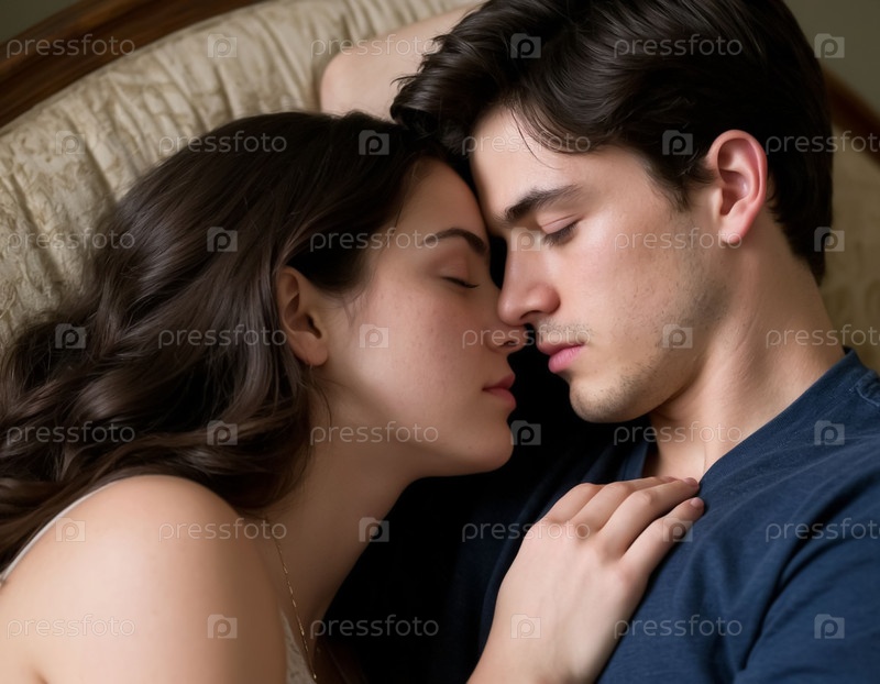 Пара влюбленных, парень и девушка, момент поцелуя и близости