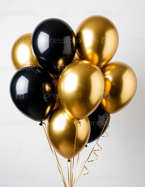 Балоны черно-золотистые на белом фоне, генерирующие ИИ