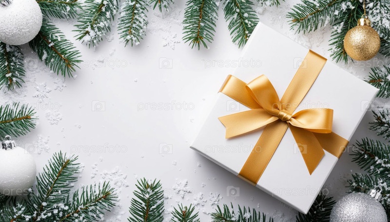 Рождественский минималистический фон с копировальным пространством и подарочной коробкой.Рождество.Новый год.Генерирование ИИ