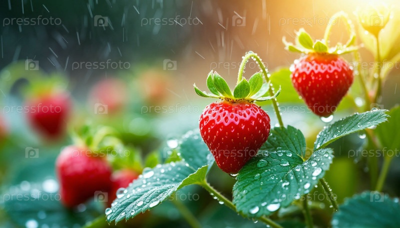 Ягоды в саду после дождя. генерация ИИ