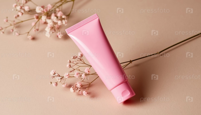 Розовая кремная схема трубки на пастельном фоне