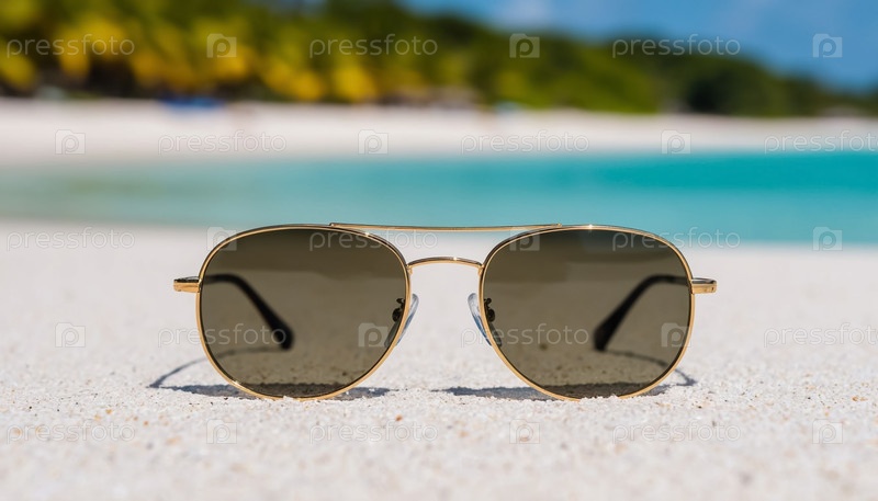 Поляризованные солнцезащитные очки на белом песчаном пляже