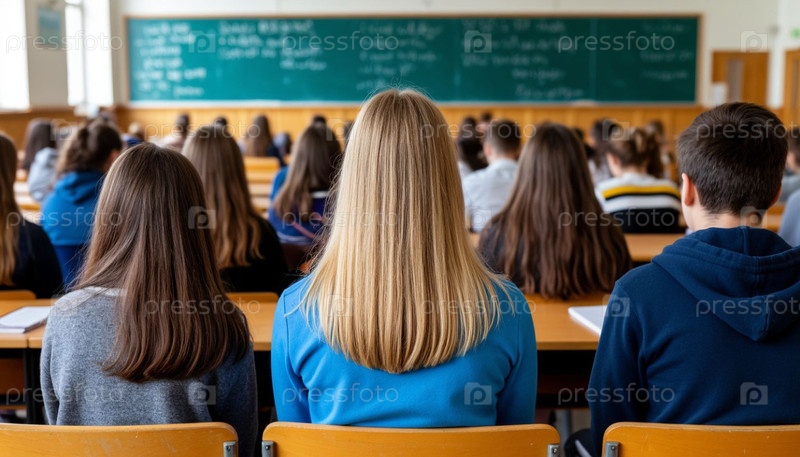 Студенты в классе, задний вид