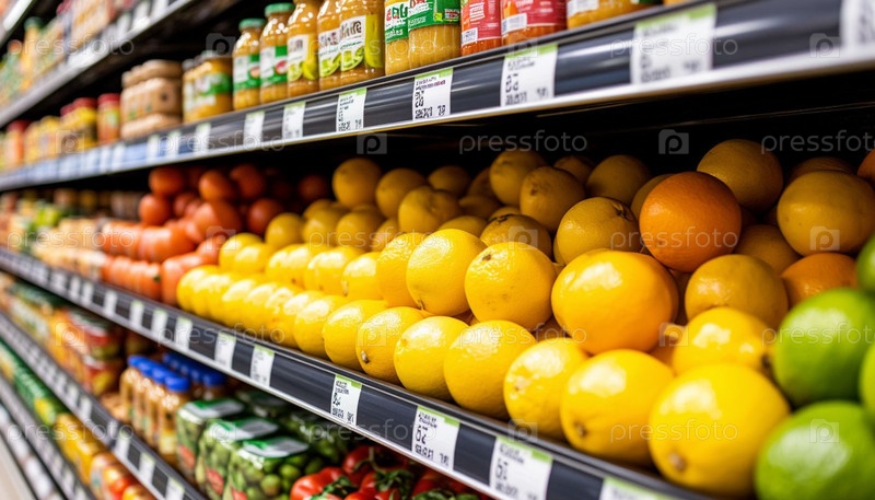 Закрываю полку с фруктами и овощами в магазине