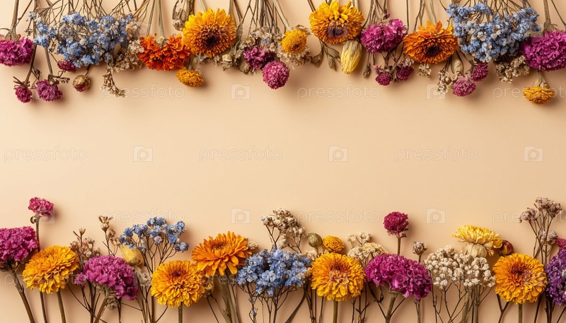 Сушеные цветы, бежевый фон, пространство для копировки. генерируемая ИИ. мужчина в халате, держащий чашку чая