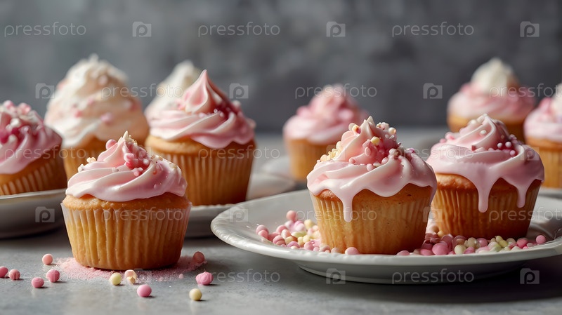 Праздничные кексы, испеченные на розовом фоне с секинами идеально подходят для романтических празднований. День святого Валентина, свадьба