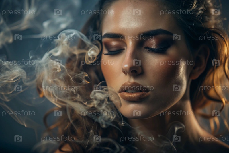 Молодая красивая женщина, завернутая в дым. 'Датура', закрывающая лицо прекрасной девушки