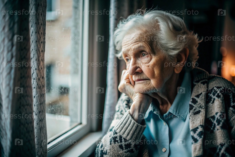 Минимализм.Портрет пожилой женщины, пенсионерки, концепция жизни пожилых людей, здоровье, одиночество и потеря памяти