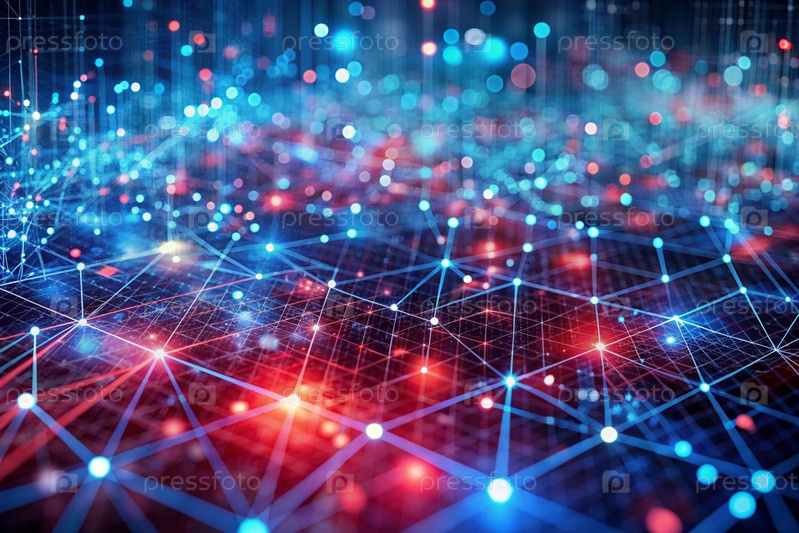 Высокотехнологичный материал. Закрытие линий и проводов цветными огнями, создание абстрактного дизайна. Концепция коммуникации, интернета и будущих технологий