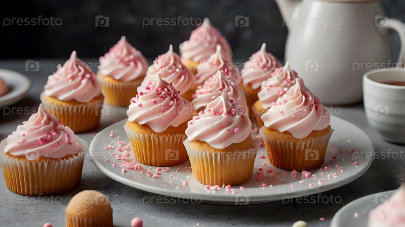 Праздничные кексы, испеченные на розовом фоне с секинами идеально подходят для романтических празднований. День святого Валентина, свадьба