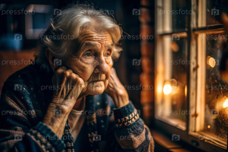 Минимализм.Портрет пожилой женщины, пенсионерки, концепция жизни пожилых людей, здоровье, одиночество и потеря памяти