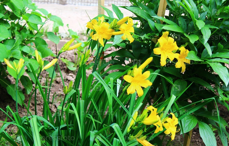 Желтые лилии цветут в саду