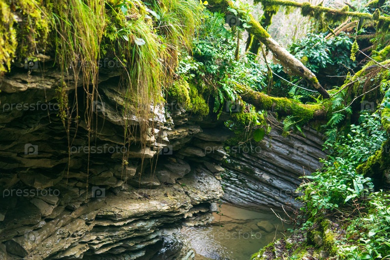Поток среди известняковых скал в тропическом лесу