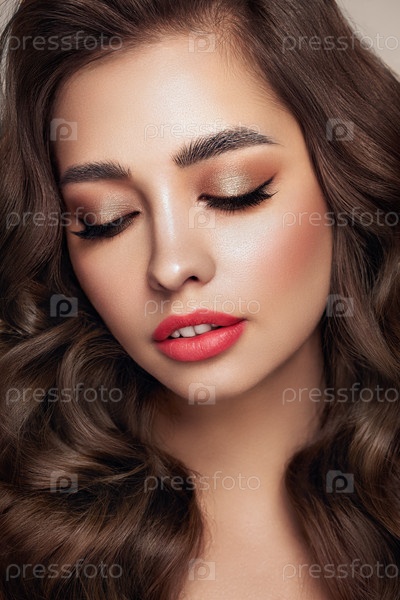 Улыбающаяся красивая женщина с длинными кудрявыми волосами