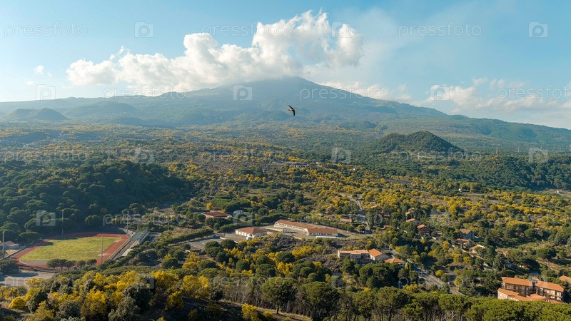 Вулканические кратеры, покрытые лесом на склонах Этны, вид с воздуха