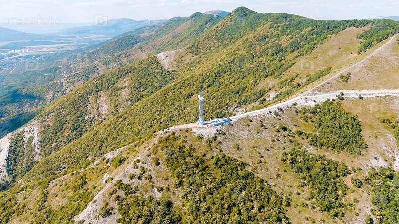 Геленджик, Россия Парк Маркота Крест богослужения с воздушного вида