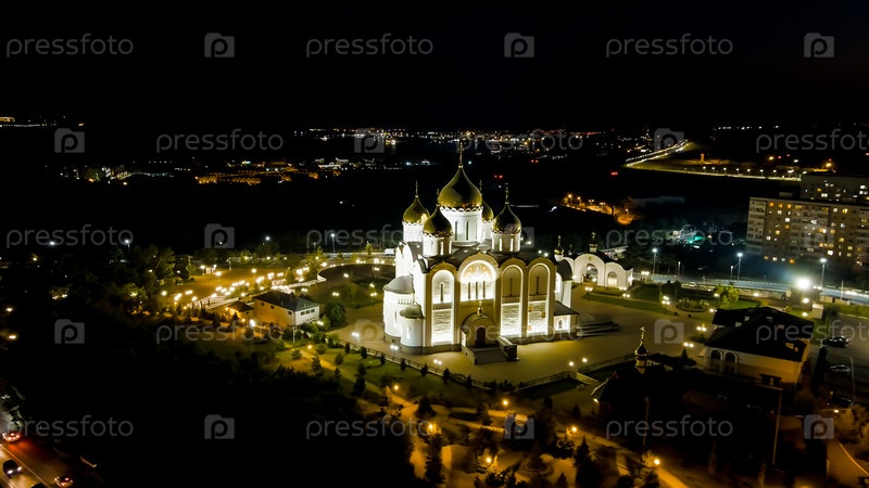 Геленджик, Россия. собор святого Андрея Первозванного. ночное время, вид с воздуха