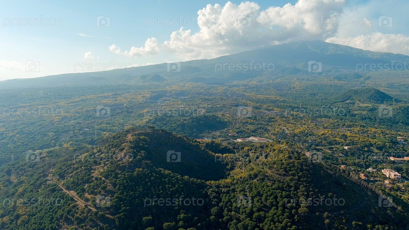 Вулканические кратеры, покрытые лесом на склонах Этны, вид с воздуха