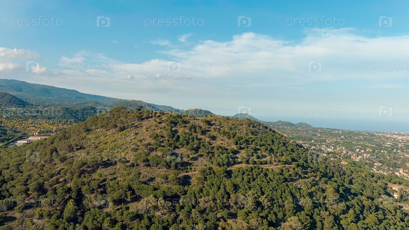 Вулканические кратеры, покрытые лесом на склонах Этны, вид с воздуха