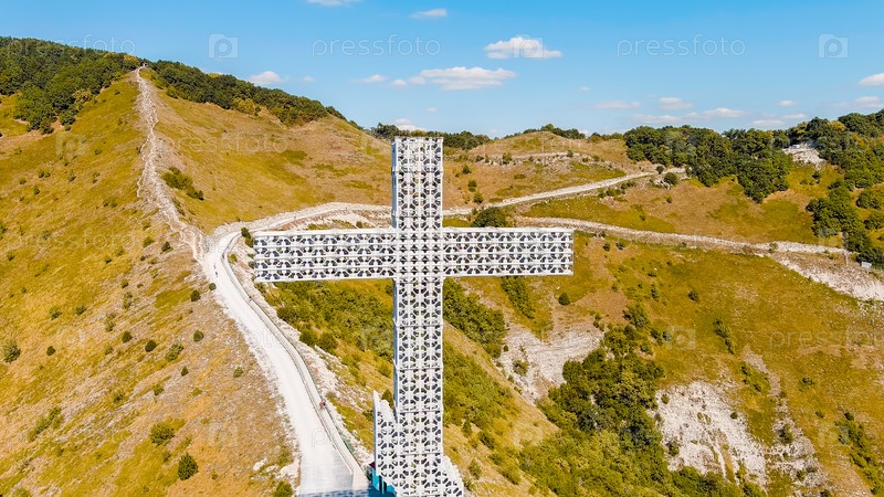 Геленджик, Россия Парк Маркота Крест богослужения с воздушного вида