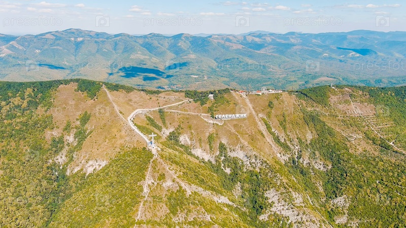 Марко́тский парк. Поклонный крест. Перевод текста на склоне в английском языке - Геленжик, Aerial View Gel
